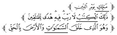 - سورة الفاتحة، الآية: 4.