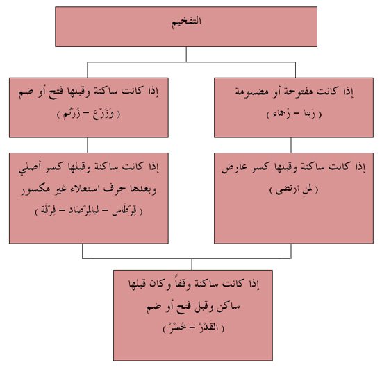 تعريف التفخيم: هو سِمَنٌ يعتري الحرف فيمتلىء الفم بصداه.